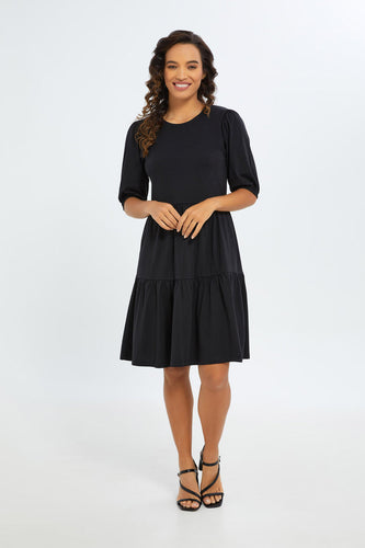 فستان باللون الأسود وكم منفوخ للنساء