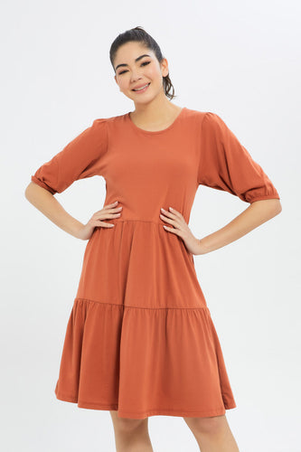 فستان سادة بطبقات باللون البني للنساء