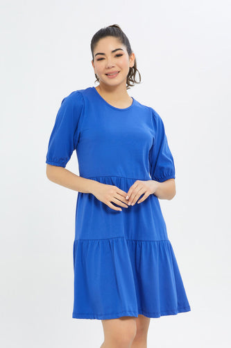 فستان سادة بطبقات باللون الأزرق للنساء