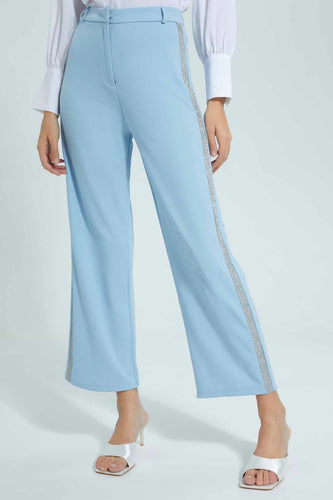 بنطلون واسع مطرز باللون الأزرق