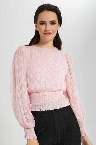 بلوزة بلون وردي مزينة بنسيج مطاطي
