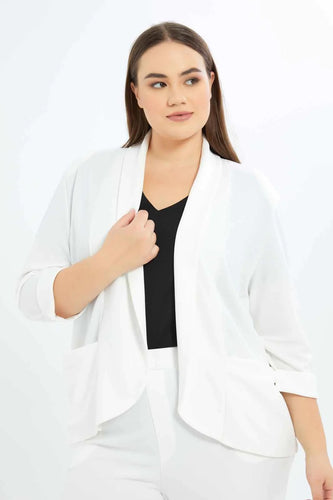 جاكيت سادة باللون الأبيض للنساء بمقاسات كبيرة