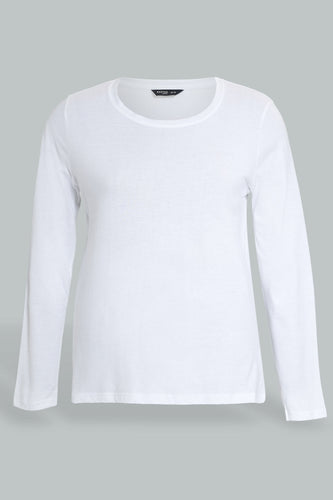 White Long Sleeve Basic T-Shirt تيشيرت أبيض بأكمام طويلة سادة