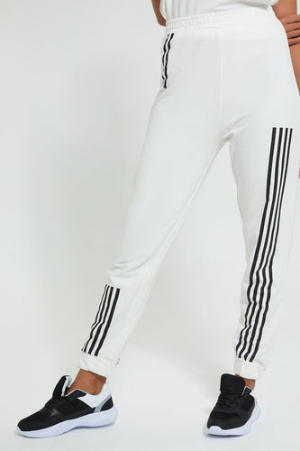 White Stripe Active Jogger بنطلون رياضي مخطط باللون الأبيض