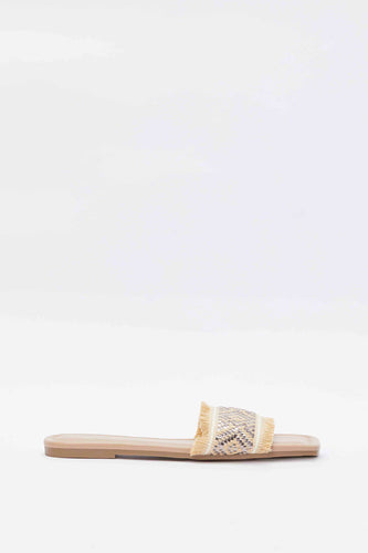 حذاء مفتوح مزين باللون البيج للنساء