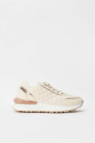 حذاء رياضي مزين باللون البيج للنساء