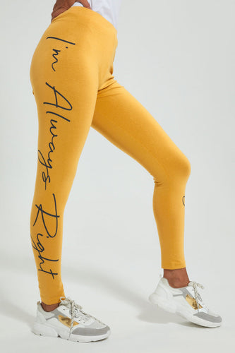 Yellow Side Print Legging بنطلون ليجينجز مطاطي مطبوع أصفر