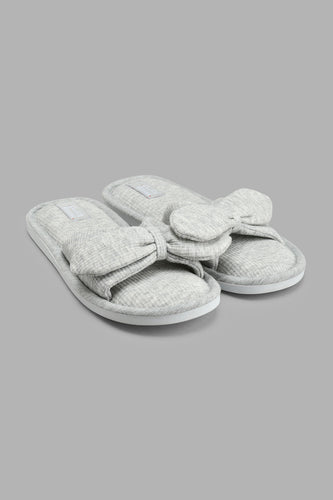 Grey Bow Trim Slipper شبشب خفيف بفيونكة باللون الرمادي