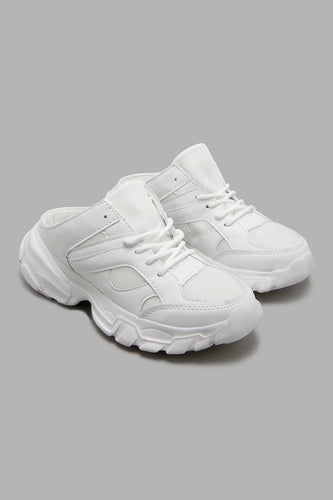 White Open Back Sneaker Mule حذاء رياضي مفتوح باللون الأبيض