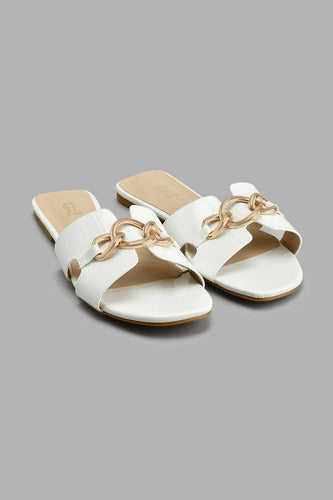 White Chain Trim Mule حذاء مفتوح بسلسال باللون الأبيض