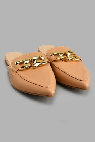 Tan Closed Toe With Chain Trim حذاء باللون البيج مغلق من الأمام