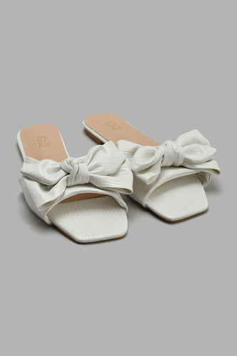 Ivory Bow Trim Mule حذاء مفتوح عاجي مزين بفيونكة
