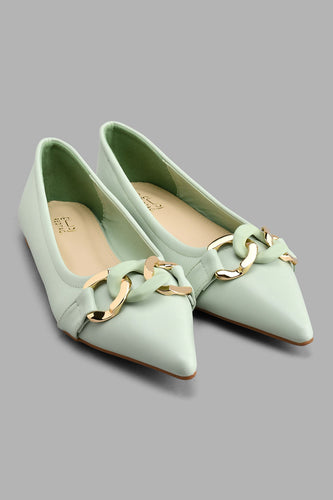 Mint Pointy Loafer With Chain Trim بالرينا باللون النعناعي بسلسلة
