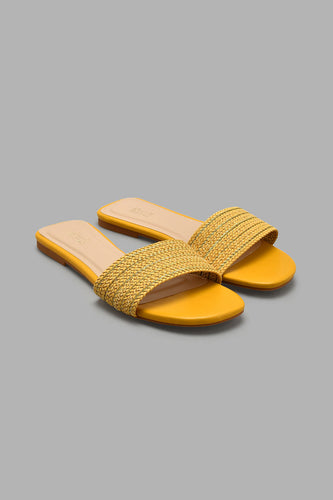 Mustard Weave Mule حذاء مفتوح باللون الأصفر الداكن