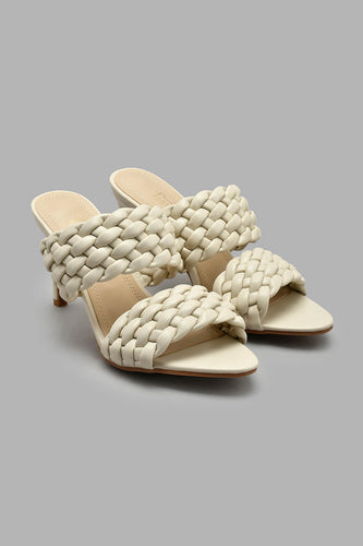 Ivory Braided Mule صندل كعب مجدل باللون العاجي